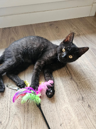 Très joueuse, elle ne résiste pas au pouvoir du plumeau