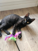 Sucre est une petite chatte encore un peu intimidée par l'humain en qui elle apprend, au fil des jours, à avoir confiance.