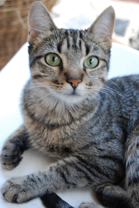 TIGRESA est une petite chatte très sympathique, un peu brutale avec les autres chats mais très affectueuse.