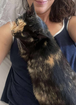Très curieuse, elle aime explorer, grimper et se percher en hauteur pour observer son environnement. Elle apprécie la tranquillité et les moments de repos, mais dès qu’elle est en confiance, elle se révèle super câline et vient d’elle-même chercher l’attention voire le jeu ! C’est aussi une grande gourmande, avec un faible assumé pour la pâtée.