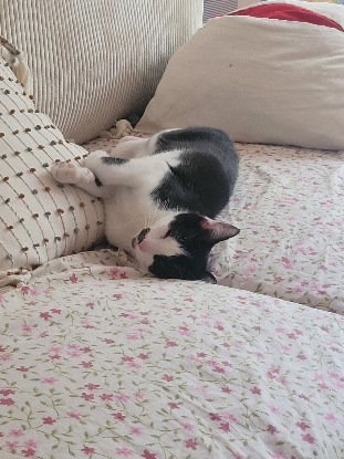 Pulque est un mâle noir et blanc d'environ 6 mois (né le 10/04/2025).