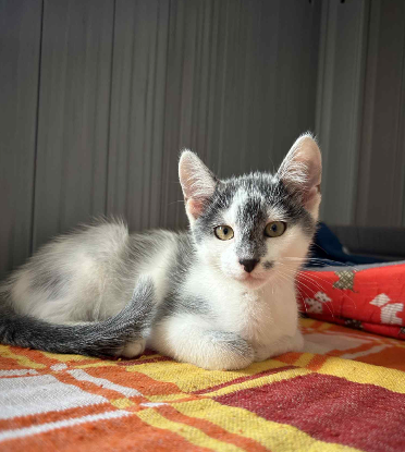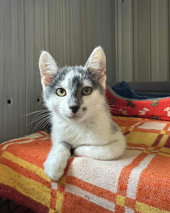 Il est propre (utilise la litière) et est sociabilisé chaque jour pour devenir un chat bien dans ses pattes. Très motivé par la nourriture, il mange aussi bien des croquettes que de la pâtée.