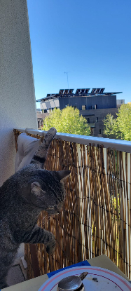 Ma queue est raccourcie mais je suis toujours aussi agile ! Mes hôtes me disent glouton, c'est vrai que j'aime manger tout ce que je trouve sur mon chemin, et miauler à tue tête quand j'ai faim...
