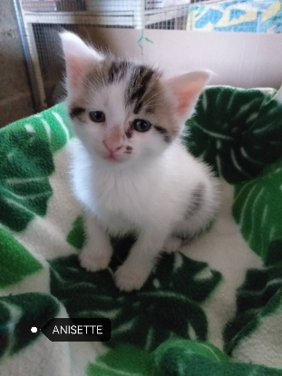 Anisette est née le 1er mai et nous avons attendu avant de la proposer à l'adoption car elle présentait un souffle au cœur.