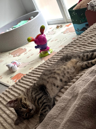 Archibald a besoin d'être approché en douceur. Une fois cette approche réussie c'est un chaton qui adore les caresses et les gratouilles, il n'est jamais loin des gens.