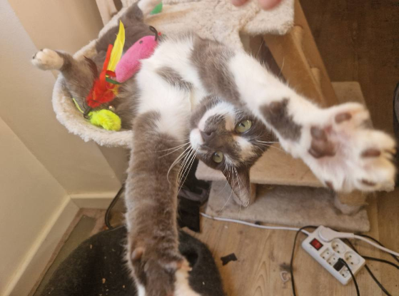 Je suis parfois un peu maladroit, et quand je joue à la canne à pêche avec les humains, et dans l'excitation du jeu, je ne contrôle pas toujours mes griffes et mes quenottes.