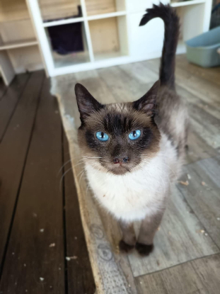 Son régime ? Pâtée-mousse à volonté. Son activité préférée ? Les câlins. Sa spécialité ? Vous hypnotiser pour obtenir une caresse ou une cuillère en plus.