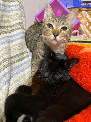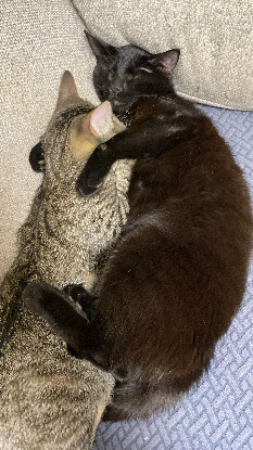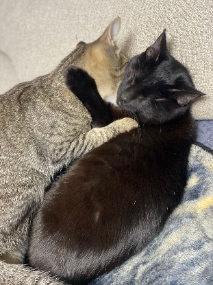 Nous aimerions que AURA puisse être adoptée avec sa sœur MAYA. Elles sont très proches l'une de l'autre. MAYA prend soin de sa sœur et la protège. Elle accourt dès qu'elle entend sa sœur miauler.