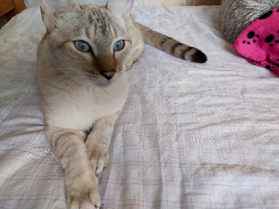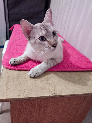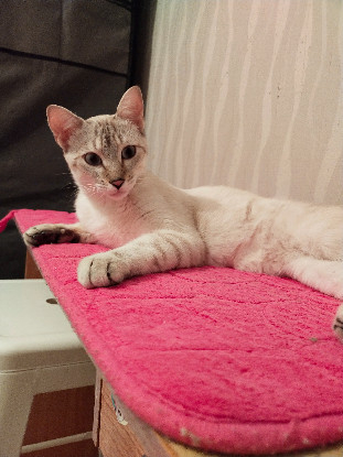 Mewtwo est un très gentil chat qui a fait d'énormes progrès depuis son arrivée à la maison.. Très attachant, il ronrone même très fort et est en demande de câlins..