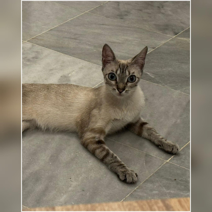 SIRA est une gentille chatte, sociable, qui a été abandonnée sur un site de nourrissage.