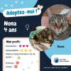Nous vous présentons notre belle Nona, une boule de poils extrêmement attachante. Nona est bien dans ses pattounes, c’est une belle minette qui sait ce qu’elle veut et sait ce faire comprendre. Elle adore que son humain lui fasse des gratouilles, et ronronner de plaisir contre elle. Nona est aussi curieuse, et très intelligente. Sans oublier sa gourmandise : une petite friandise et Nona fera tout pour vous ! Elle fera d’ailleurs ses yeux doux pour une petite douceur.