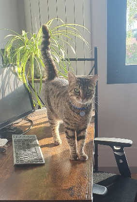 Titre de l’œuvre : "Grisette ou la quête d’un canapé moelleux et d’un cœur patient"