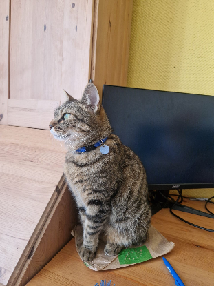 (Grisette observe un autre chat. Elle cligne lentement des yeux.)
