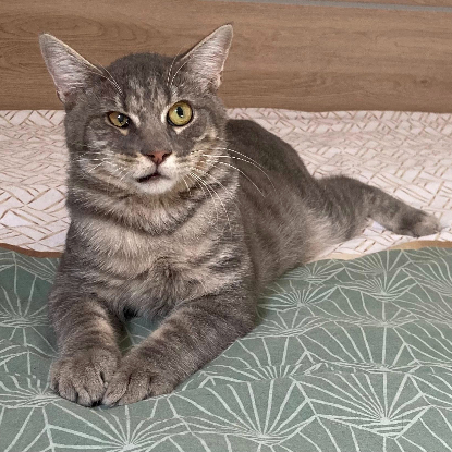 Ce magnifique chat gris tigré Kairo, âgé d’à peine 1 an, a déjà traversé bien des épreuves…