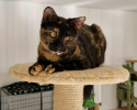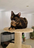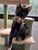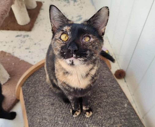 Yoko est une jolie minette écaille de tortue, née le 15/08/2024, venue de l’île de la Réunion. Elle est légèrement ataxique, c’est a dire qu’elle a quelques troubles de l’équilibre et de la coordination, quelques tremblements de tête, c’est neurologique et très léger. Elle est également totalement sourde de naissance et elle a un œil avec un léger voile, cicatrice d’un ancien coryza.