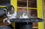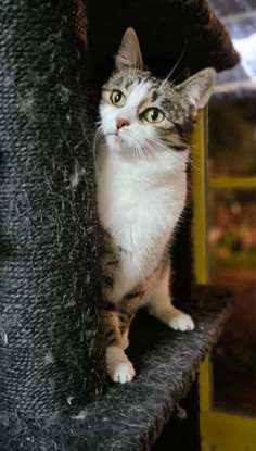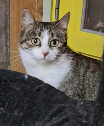 Chatte, type Européen, coloris tigrée et blanche. Née le 18 janvier 2025.