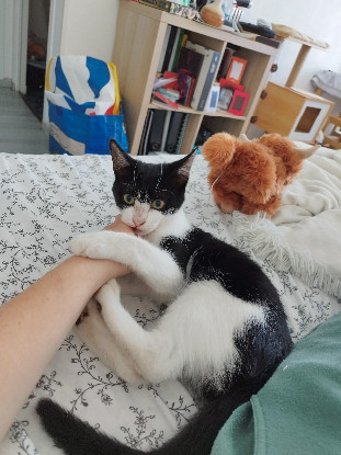 Dès son arrivée, il s’est montré curieux, partant à la découverte de son nouvel environnement, mais surtout avide de câlins, ponctués de nombreux ronrons. Miwo est aujourd’hui un vrai petit pot de colle ! Bavard, il a toujours quelque chose à miauler, comme pour engager la conversation. Il adore observer le monde par la fenêtre, confortablement installé sur le canapé, même si certains bruits extérieurs – comme les motos – l’impressionnent encore. Si sa crainte semble peu à peu s’apaiser, il sera absolument nécessaire pour lui de vivre uniquement en intérieur, dans un environnement sécurisé (sortie ok uniquement sur balcon ou fenêtres sécurises).