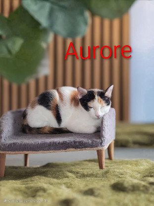Une petite Calico (tricolore) un plus réservée que son frère Aramis.