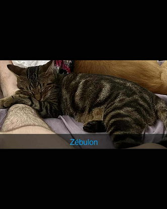 Il adore les câlins, quand on le prend dans les bras, c'est une vraie boîte à ronron.