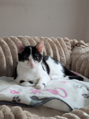 Avec mes frères et sœurs, j’ai été retrouvé abandonné dans une boîte en carton sur le bord d’une route… Heureusement, nous avons été recueillis et mis à l’abri. J’ai grandi d’abord dans une famille entouré de 7 autres chatons, avant d’arriver dans ma famille d’accueil actuelle où je vis avec ma sœur, un autre chaton et un chien.