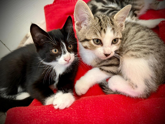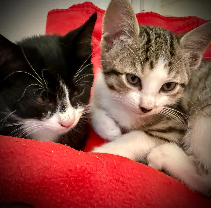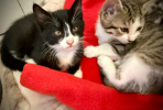 Ciboulette et Paprika sont 2 chatons femelles , type Européen, Ciboulette est Couleur Noir et Blanc, Paprika Tabby tigré Blanc et Brun