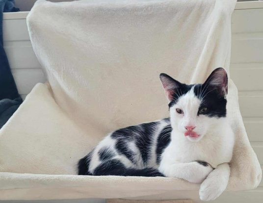 Il  est un chaton qui a été amené à la fourrière suite à un abandon. Il vit en famille d’accueil avec 2 chatons de son âge, et 4 chats adultes.
