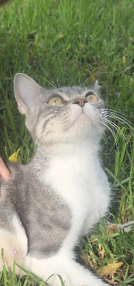 MAMI est une petite mère courage de tout juste un an qui a été abandonnée devant la porte de la maison de l'une de nos bénévoles, enfermée dans une cage de transport avec ses 5 petits, en pleine chaleur.