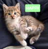 C’est un chaton équilibré, plus discret que ses frères et sœurs il recherche davantage le calme mais quand il est de sortie, il adore se chamailler. C’est un curieux qui ne manquera pas de vous faire craquer avec ses grands yeux ronds et son petit air de : je suis innocent. Happy est tout doux, dans tous les sens du terme !