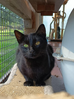 Roméo a choisi une autre voie : celle de la confiance et de la douceur. Il s’approche de l’humain, accepte les caresses quand il le décide, et vit en harmonie avec ses compagnons félins.