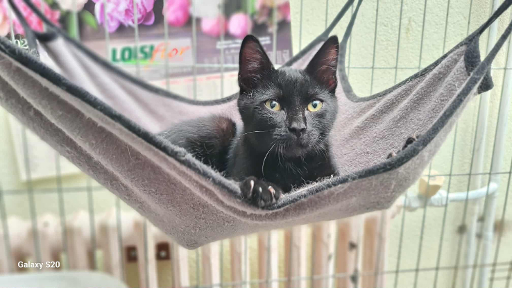Chaton mâle, type Européen, coloris noir. Né le 29 juin 2025.