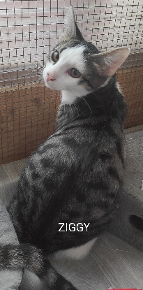 ZIGGY a 5 mois, c'est un grand au cœur tendre, lorsqu'il est en confiance il se laisse câliner avec plaisir et se met à ronronner.