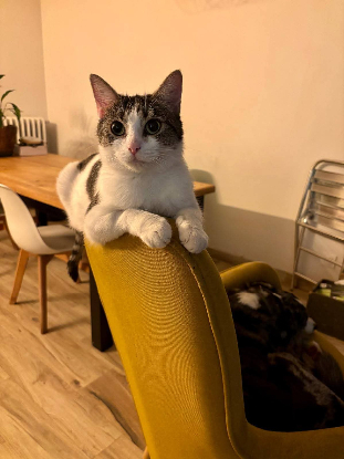 Voici Okala, une jolie chatte née le 01/10/2022 , pleine de tendresse et de douceur. Sociable, câline et très proche de l’humain, elle aime la présence, les caresses, et surtout qu’on prenne le temps d’être avec elle.
