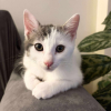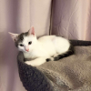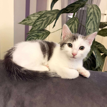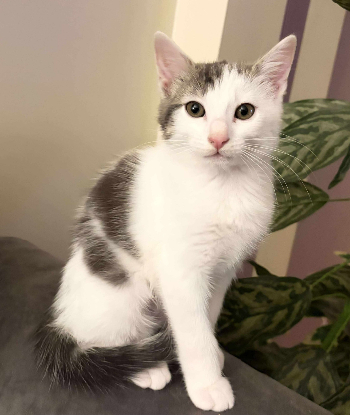Ce petit cœur gris et blanc a tout pour faire fondre, un caractère joueur, et une grande tendresse. Il adore jouer avec ses frères et sœurs, courir partout, grimper, mais il sait aussi très bien revenir se poser tout contre son humain pour une sieste pleine de ronrons.