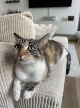Sa tranquillité vous apaisera, autant que ses beaux yeux verts au milieu de sa belle fourrure tricolore.