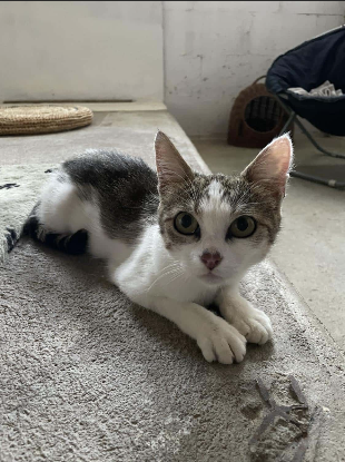 Elle est arrivée avec deux chatons et, maintenant que les petits ont grandi, minette peut partir avec sa famille pour la vie.