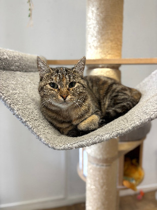 Sully est une adorable chatte tigrée de 2 ans, au regard doux et curieux.