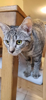 Athena est une jeune femelle née le 01/05/2025, qui a été trouvée en bord de route par Guylaine et a eu la chance de rejoindre notre tribu de boules de poils.