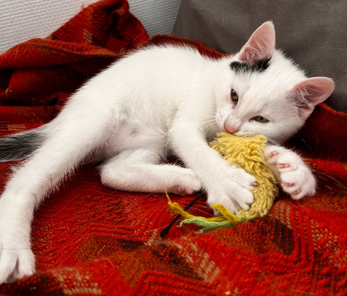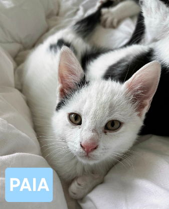 Doux mais aussi plein de vie, Paia est une vraie boule d’amour. C’est le prince du groupe : il aime être porté, rester dans les bras et adore les câlins. Très communicatif, il sait se faire comprendre quand il veut de l’attention. Propre et soigneux, Paia va sans problème à la litière.