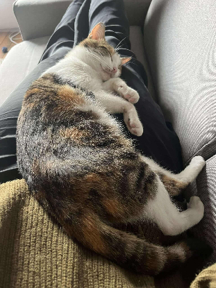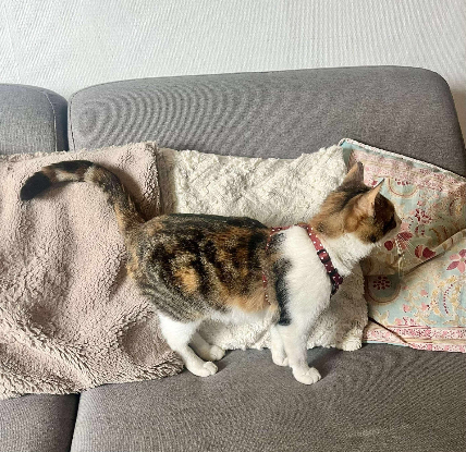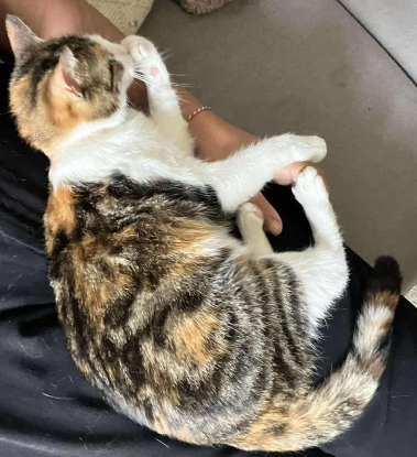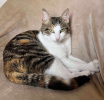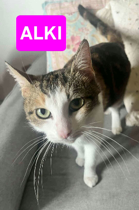 Alki est une petite chatte tricolore adorable qui est joueuse et très câline.