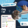 Pour Caly nous cherchons donc une famille en maison ou appartement rez de jardin. Caly est heureuse en intérieur, mais aura aussi le besoin de prendre l’air au soleil et chasser les mouches dehors. En revanche Caly n’est pas compatible avec ses congénères chats. Enfin, Caly est autonome en journée, mais aura quand même besoin de beaucoup de présence humaine à la maison pour être heureuse !