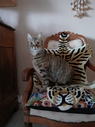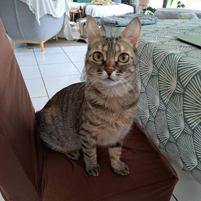 Voici la très jolie Caly, une minette débordante d’amour et de vie. Caly est une chatte très curieuse qui viendra mettre ses pattes dans vos jambes pour surveiller vos faits et gestes. Elle adore observer ses humains, participer à leurs activités (type cuisine, télétravail, ménage aussi..). Caly est aussi très gourmande, elle sera à l’affût pour tenter de récupérer un petit bout de nourriture en faisant ses yeux doux (et comment résister à ses beaux yeux). Elle aime également être au calme, faire sa sieste sur un coussin moelleux agrémentée de quelques caresses. Caly est donc une minette qui aime les plaisirs simples de la vie !