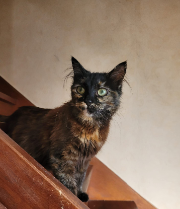« Mais que vois-t’on ? Une Chewbacca miniature ? Et non ! C’est Chewby ! C’est à si méprendre avec son pelage écaille de tortue, sa longue queue touffue et ses longs poils qui sortent de ses oreilles !