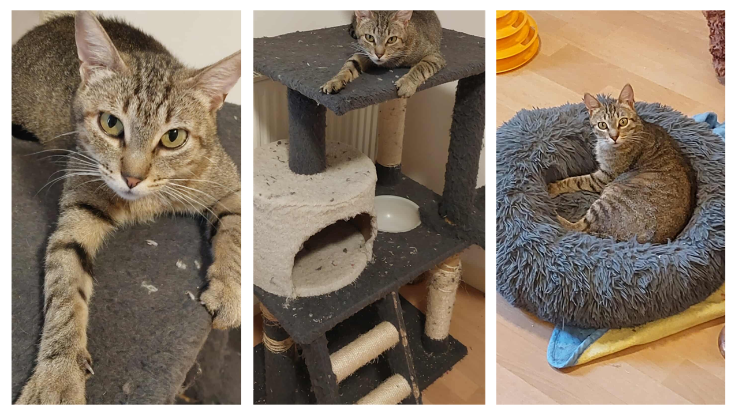 Asia est discrète, on voit qu'elle est en demande de caresse mais n'ose pas encore venir vers vous. Il n'y a que quand vous lui donnez sa patée qu'elle se laisse caresser et avec des ronrons. Attention comme beaucoup de chat elle tient à la ponctualité des repas sinon elle vous le fera comprendre.