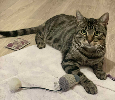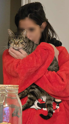 J’aime passer mon temps dans ma cachette et en ressortir dès que mon humaine est de retour , pour le moment les enfants me font un peu peur .