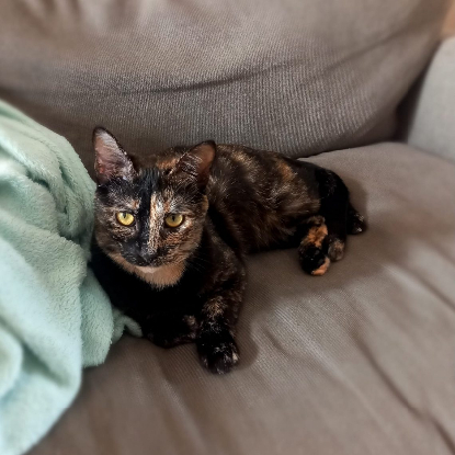Cassandre est aussi belle que gentille. C’est une minette bien dans ses pattounes, qui sait ce qu’elle veut et ce qu’elle aime. Dans ses petites choses préférées on compte bien entendu : les friandises. Elle ne résistera jamais à une petite friandise, et vous fera même les yeux doux pour en avoir encore plus. Cassandre est aussi joueuse et très curieuse. Elle est pleine de vie ! Elle aime passer du temps avec ses humains, pour avoir des gratouilles, ou simplement pour les observer. Cassandre a donc beaucoup d’amour à donner, pour peu qu’on lui ouvre son coeur.