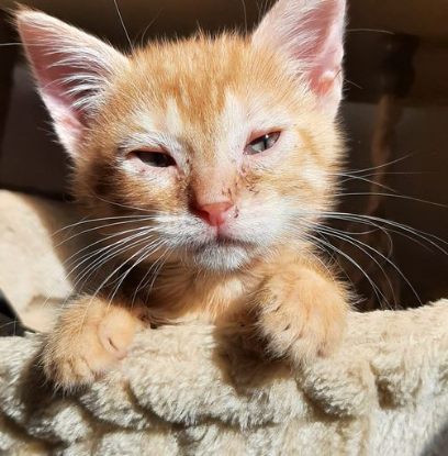 Actuellement, il est suivi par le vétérinaire pour un petit traitement contre la coryza et les vers, et son état s’améliore déjà.