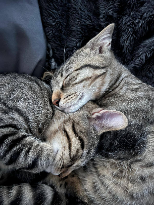 Tous les 2 sont fusionnels, joueurs, câlins et gourmands.