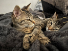 Wilson reste un peu plus timide que sa sœur, mais la machine à ronron et à câlins se déclenche au quart de tour dès qu’on le touche !