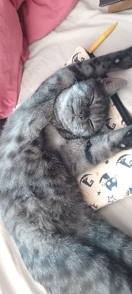 Il se montre très câlin avec sa famille d’accueil, surtout dans les moments de repos, où il adore venir se blottir dans le lit ou tout contre ses humains. Il se laisse porter quelques instants, même si ses bras préférés restent ceux du canapé ou de la couette.