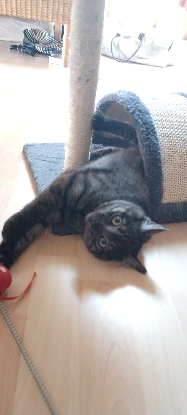 Pixie est un chaton sensible, curieux et joueur. Il aime passer du temps à observer, à explorer et à s’amuser avec ses jouets : son arbre à chat et les bouchons en liège sont ses favoris !